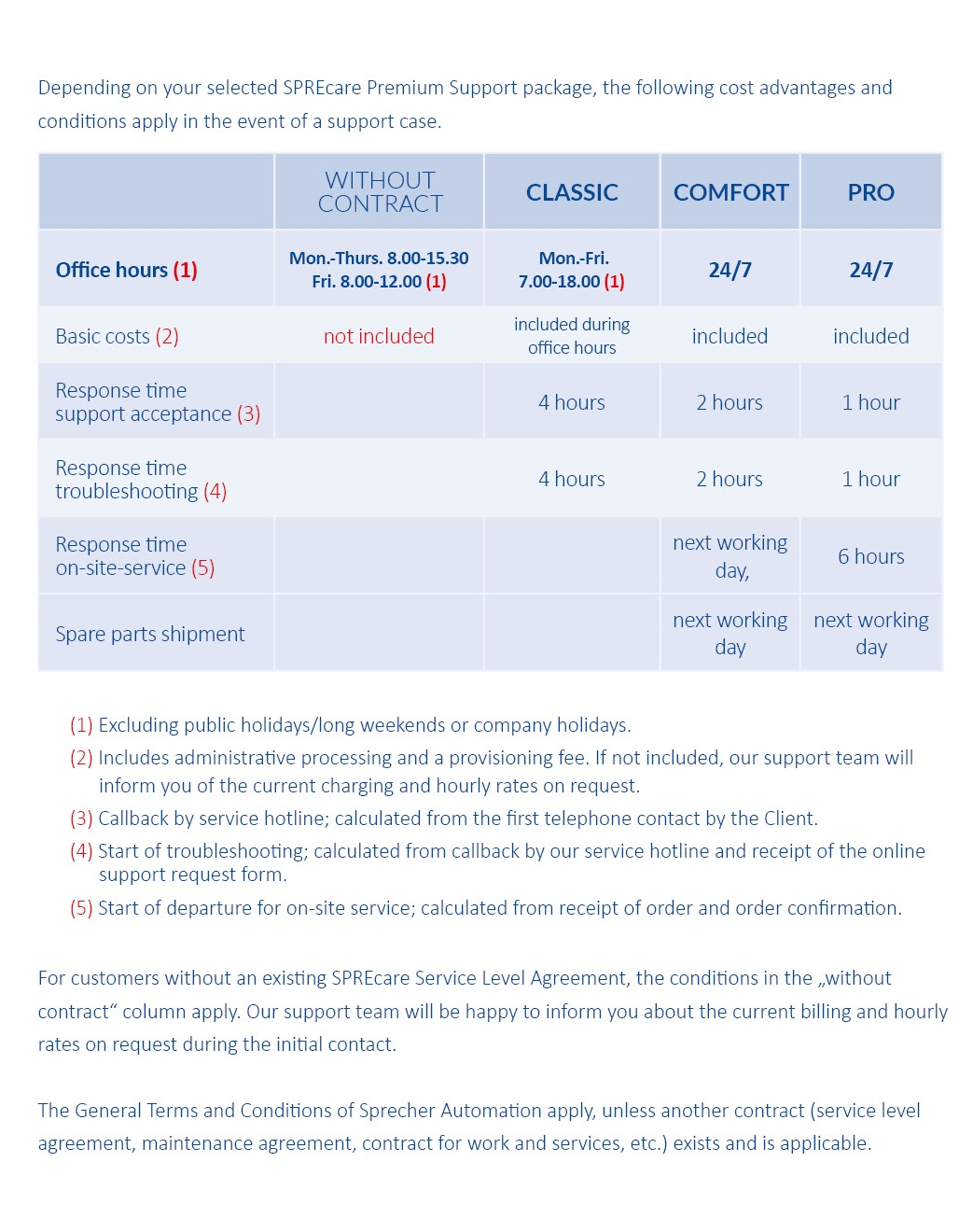 Customers of our SPREcare Premium Support please contact our service hotline directly - time-critical repairs can only be carried out after prior notification of a fault by telephone.