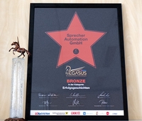 Am 6. Juni 2019 ging der wichtigste Wirtschaftspreis des Landes – der „Pegasus“ – in Gold an Sprecher Automation. Über 300 Firmen haben sich heuer für die begehrte Auszeichnung beworben.
